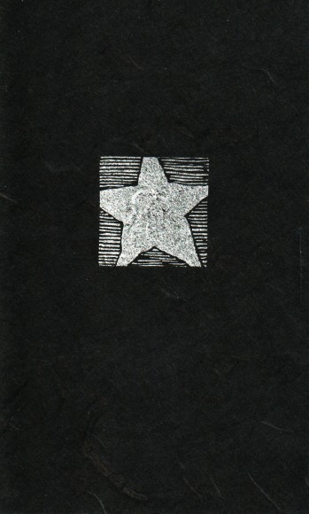 À l’origine, un très grand papier de fabrication coréenne artisanale (240 x 150 cm) chargé, au recto et au verso, d’un dessin à la mine de plomb et au pastel sec noir ; papier coupé en quatre pour obtenir huit cahiers de quatre pages. Des serpentes de papier japonais noir Unryu ont été insérées entre chaque feuillet, toutes imprimées d’un semis de lettres capitales gravées. Rien n’est dit du sens de ces treize lettres, qui occupent successivement les pages intercalaires, permutant leurs positions de manière apparemment aléatoire. Quant aux noms dont elles seraient les initiales, « ne pouvant être utiles, [ils] doivent rester inconnus »1. Le colophon est également gravé en taille d’épargne et imprimé sur la dernière feuille de Japon noir. Découronné puis cousu en « nid d’abeille », le volume a été placé sous deux ais de carton habillés d’un fort papier thaïlandais. Reliure et coffret de Nathalie Peauger.